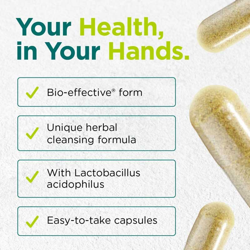 Unique herbal cleansing formula: Provides a synergistic blend of 16 traditional herbs and other nutrients with broad activity to support microbial balance.