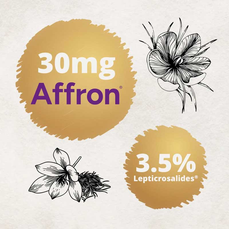 Saffron Balance features Affron® saffron extract, standardised to 3.5% Lepticrosalides®.
