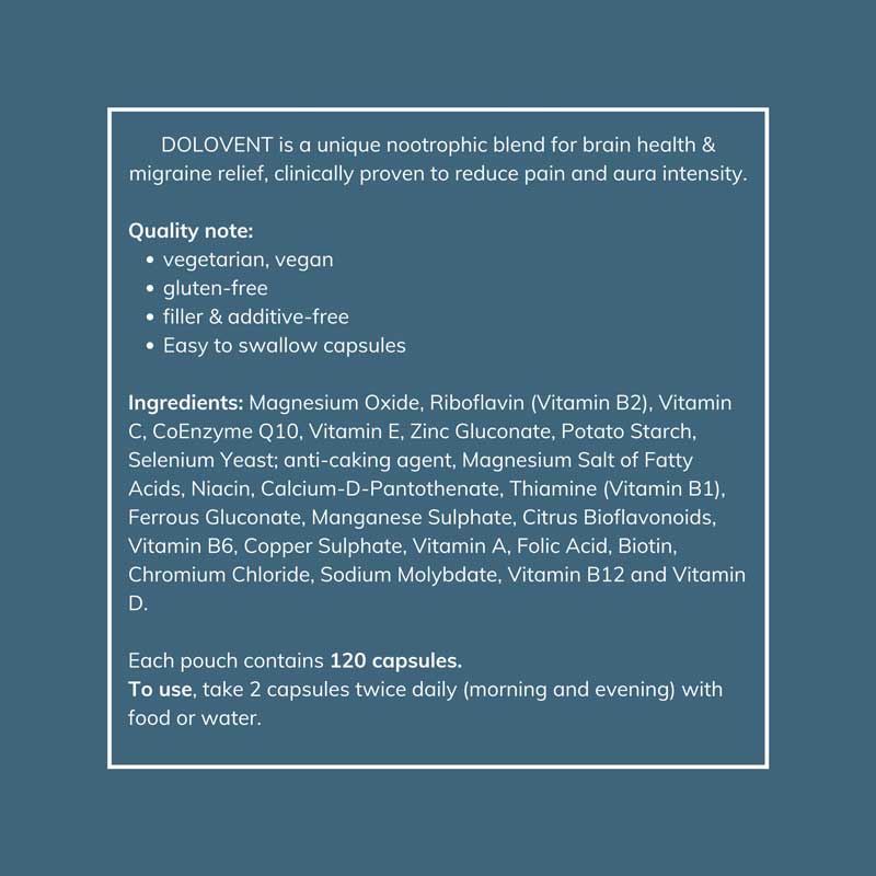 Unlike generic supplements, Dolovent delivers clinically validated doses of key nutrients to support brain energy metabolism and reduce migraine symptoms. Trusted by healthcare professionals and backed by scientific research, it’s your go-to for cognitive clarity and comfort.