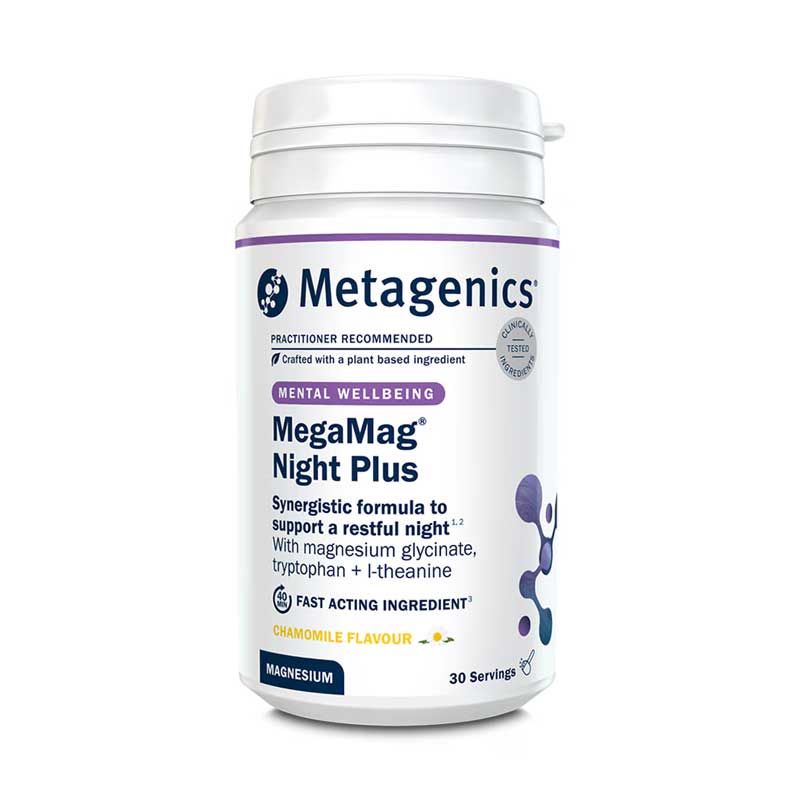 Ideal for those who struggle to fall asleep or suffer from poor sleep quality, MegaMag® Night Plus, Metagenics expertly blended powder formula combines a selection of powerful, science-backed ingredients to give you a restful night’s sleep. Formulated with L-theanine, the amino acid thought to give tea it’s famous calming properties, which has been shown in studies to have a relaxing effect in as little as 40 minutes.