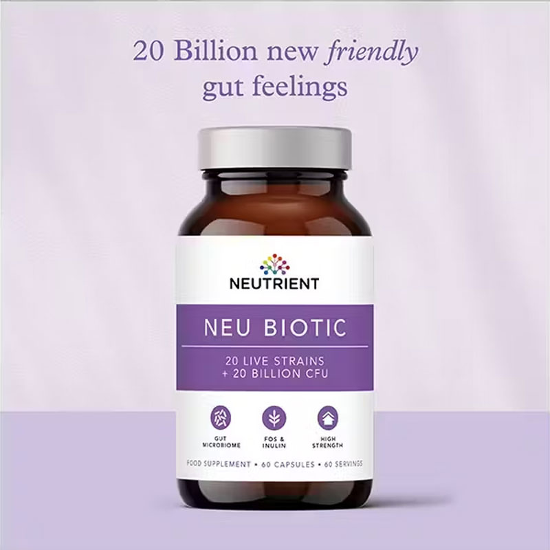 Neutrient Neu Biotic is a high strength, multi-strain microbiome formula to help replenish friendly bacteria and support a diverse gut microbiome.